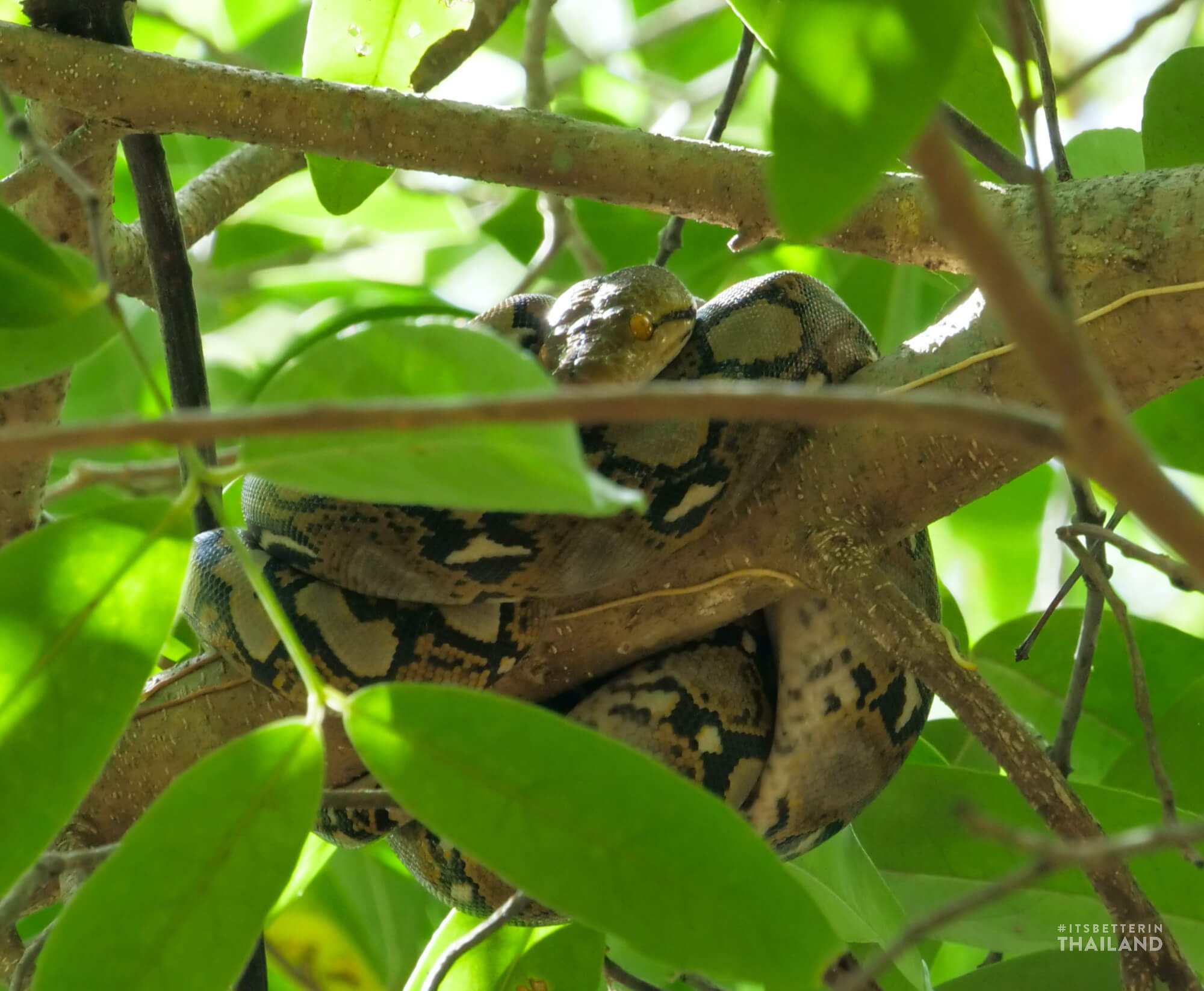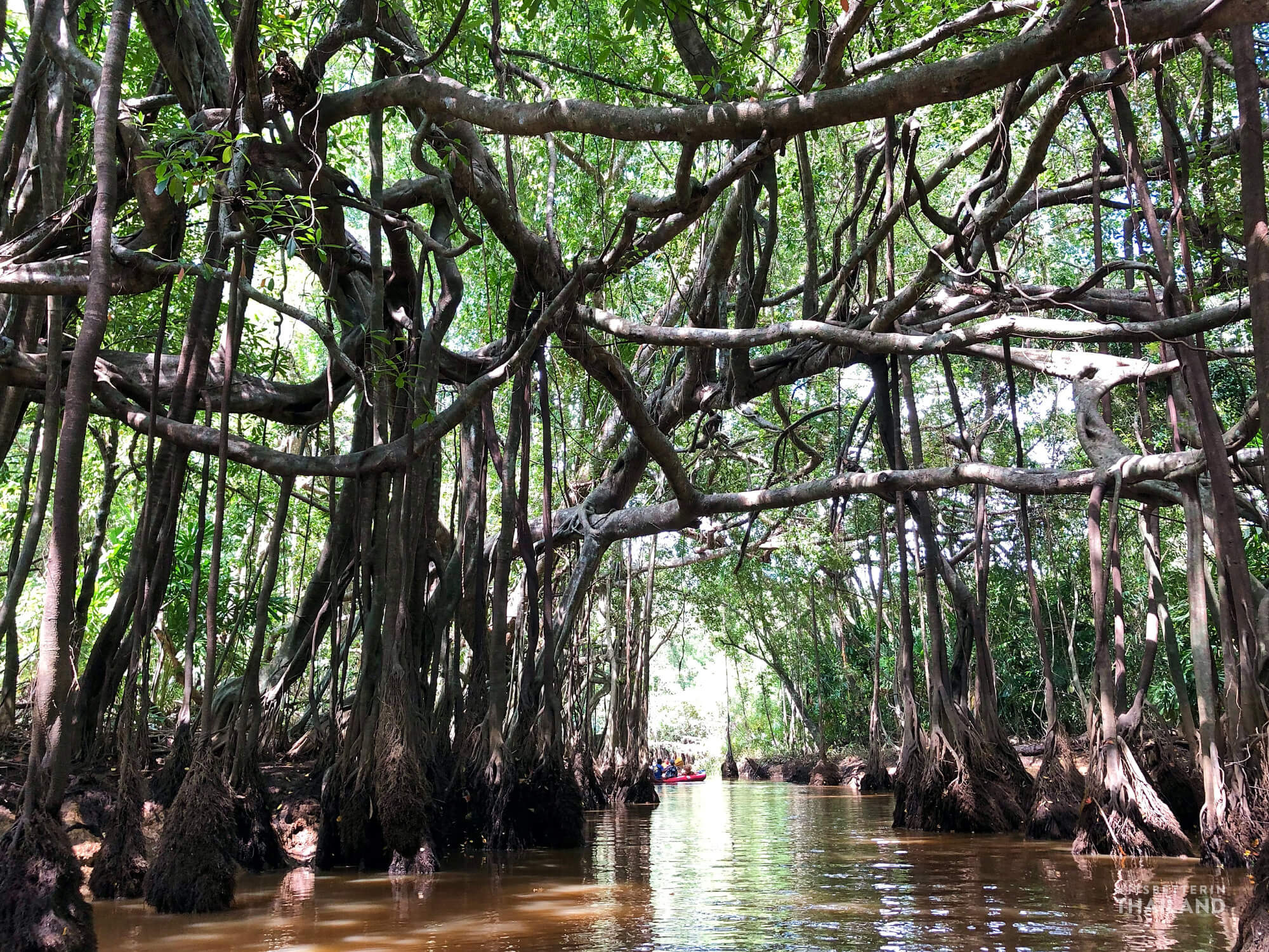 Sang Ne Canal, AKA “The Little Amazon” is a small stretch of mangrove forest located in the town of Takua Pa in Thailand’s Phang Nga Province. The notable feature of Sang Ne Canal is the massive banyan trees whose intricate root systems create archways over the small waterway. The Little Amazon is a haven for wildlife, and visitors commonly see macaque monkeys, reticulated pythons and other snakes, oriental pied hornbills, monitor lizards, kingfishers, and more.